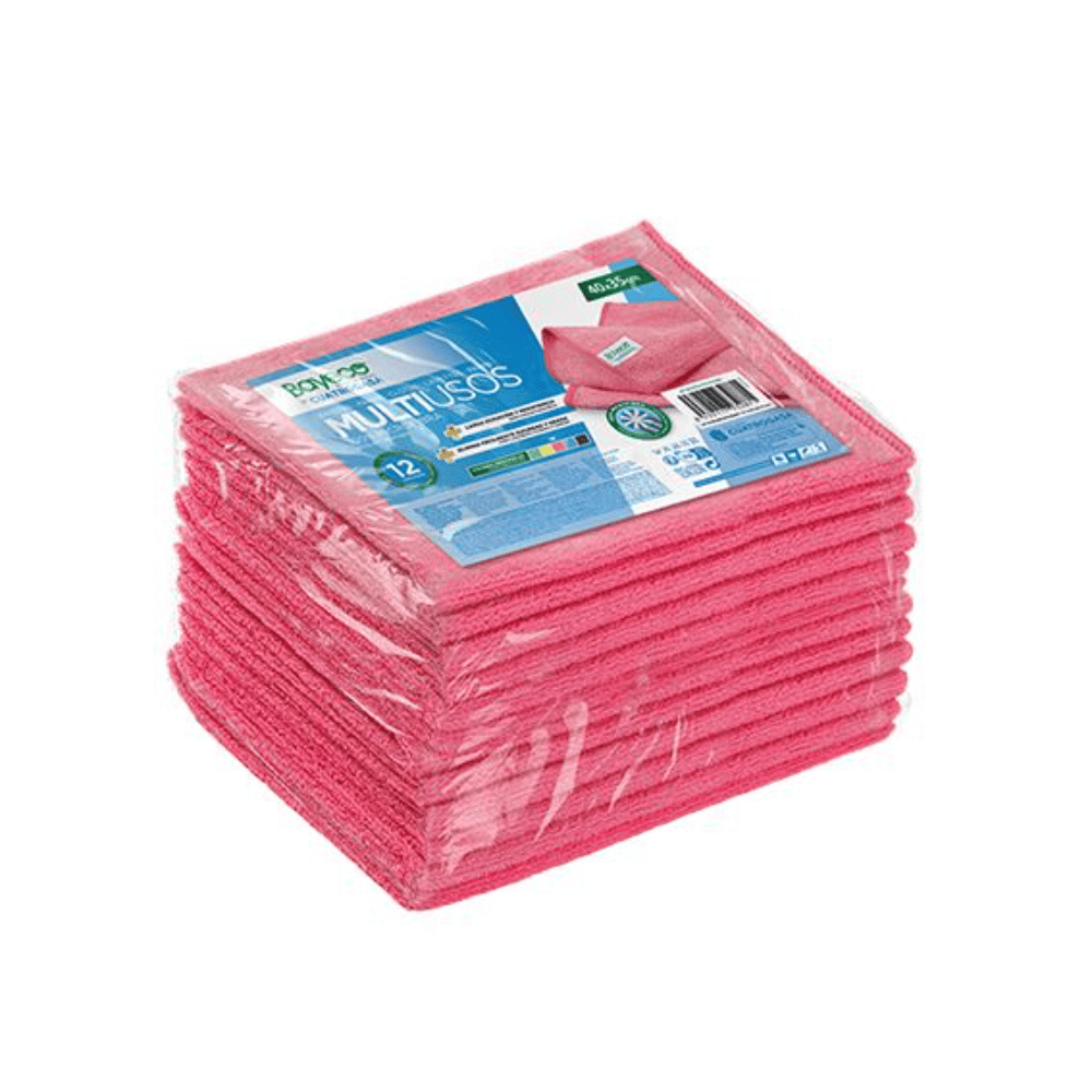Se trata de una bayeta multiusos de microfibra 100 % con tejido Terry (rizo) y remallado en el mismo color del tejido para mejorar la resistencia en el uso continuado.