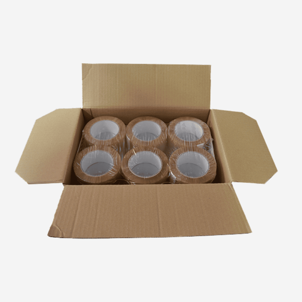 Está fabricado en BOPP (polipropileno biorientado) con adhesivo solvente a base de caucho natural y resinas de hidrocarburo. Tiene 48 mm de ancho y 132 metros de longitud por rollo.