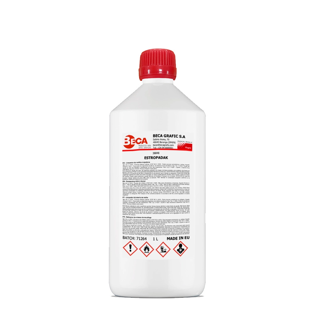 ESTROPADAK es un limpiador desengrasante específico para baterías de mojado, formulado para eliminar grasa, restos de tinta reseca y suciedad acumulada sin dejar residuos.