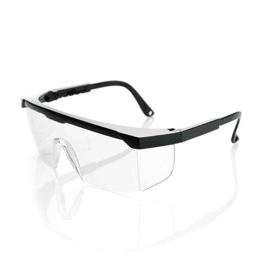 Es una gafa universal de una sola pieza, con guardas laterales integradas y patillas regulables en longitud para ajustar mejor al rostro.