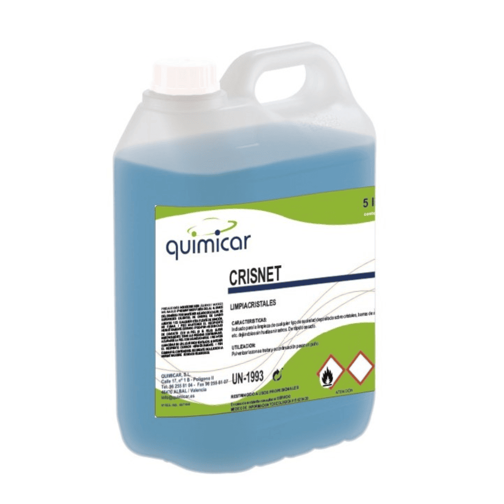 Crisnet es un limpiacristales formulado para superficies no porosas, como cristales, espejos, mamparas de acero inoxidable o superficies vitrificadas. Su composición combina agentes de limpieza eficaces con efecto anti-vaho, lo que permite eliminar la suciedad sin dejar residuos ni velos.