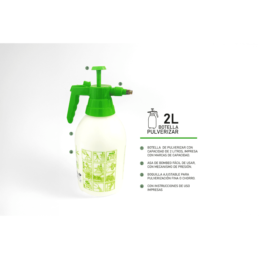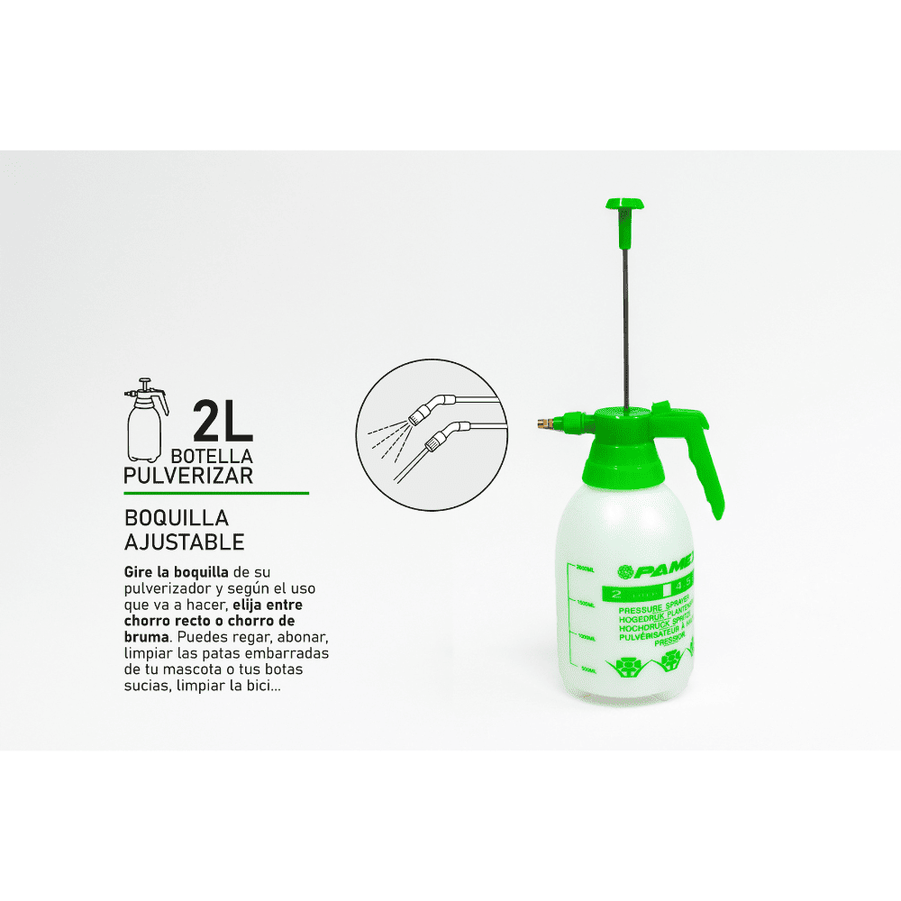 En resumen, un pulverizador manual de 2 litros, resistente y fácil de regular, pensado para trabajos de riego, tratamiento y limpieza donde el control de la pulverización es importante.