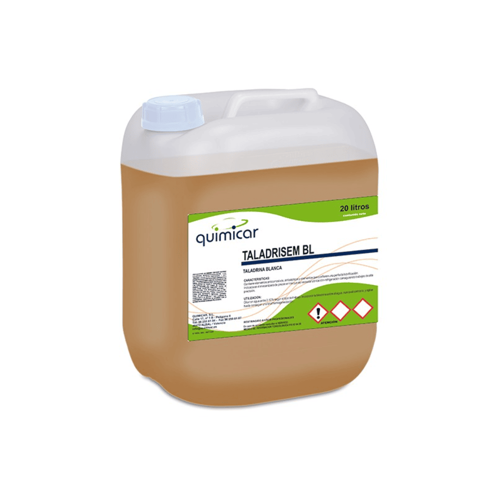 TALADRISEM BL es una taladrina blanca emulsionable en agua que, al mezclarse, forma esa emulsión lechosa tan característica y estable que combina muy bien lubricación y refrigeración.