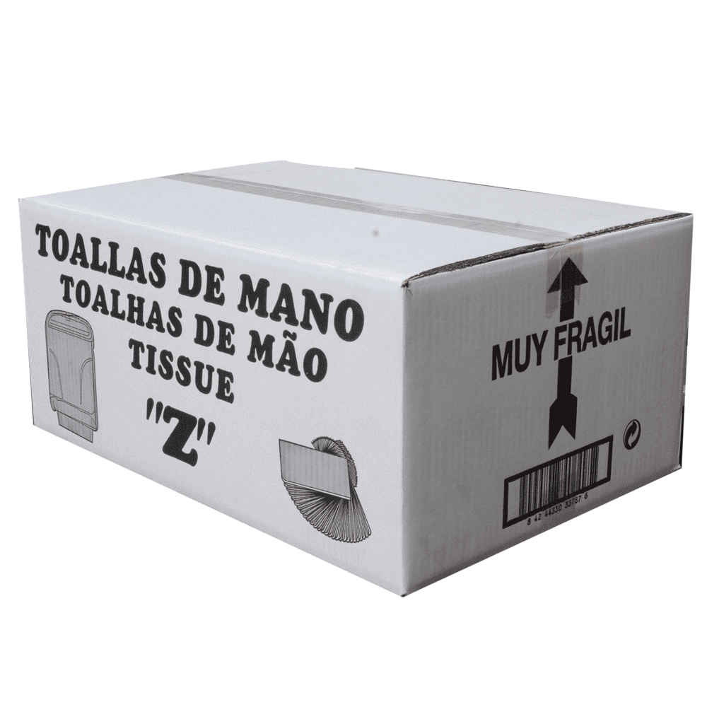 Es una toalla de papel tipo Zig Zag, de color blanco, fabricada en tissue virgen de buena calidad. Las dos capas le dan cuerpo y resistencia, y el gofrado mejora la absorción sin que el papel se rompa con facilidad.