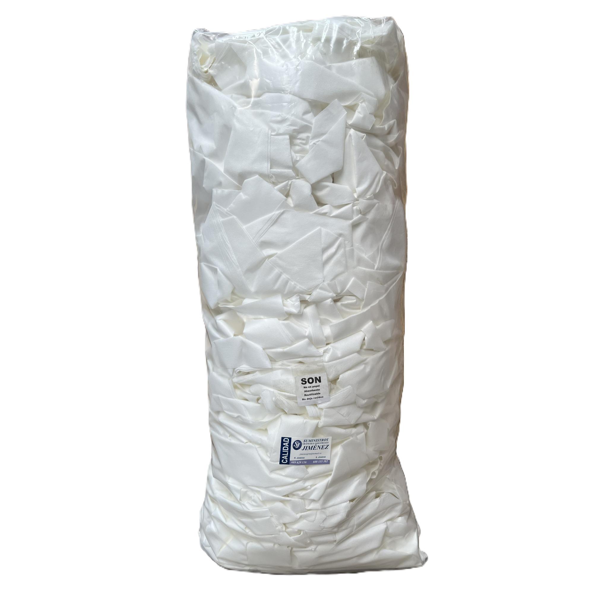 Los paños se suministran cortados a mano, con medidas aproximadas entre 40 y 50 cm, lo que los hace cómodos para limpieza general, desengrase o trabajos más técnicos. También se puede adaptar el tamaño según necesidad.