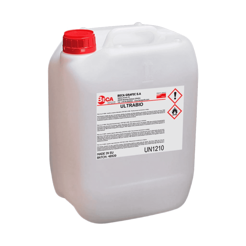 Con las tintas UV no hay margen para medias tintas. Cuando empiezan a secarse en la mantilla o en la batería, la limpieza tiene que ser rápida y eficaz, porque si no el problema se agranda en minutos. ULTRABIO está pensado para ese tipo de trabajo: limpiar bien, sin rodeos y sin castigar los componentes preparados para UV.